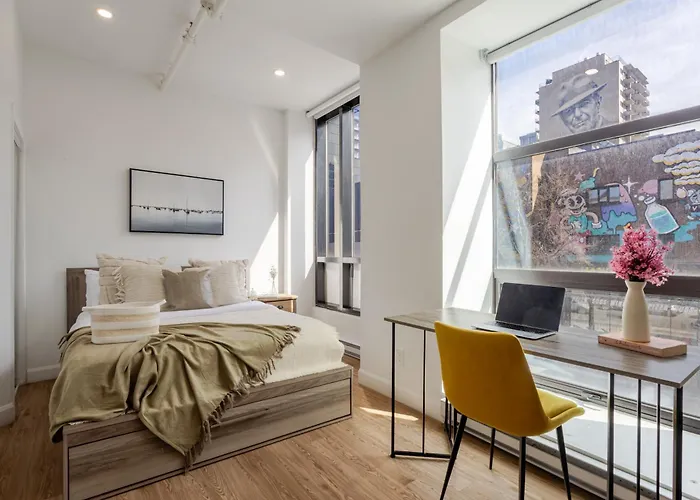 Pour profiter de vos vacances à Montréal, séjournez à Modern Studio On Bishop - Spotlight Mtl Montréal de 60 m², qui se trouve à 14 minutes à pied du Centre Bell et à moins de 15 minutes de marche du Montréal souterrain. Le Wi-Fi est fourni pour les activités d'affaires et de loisirs.